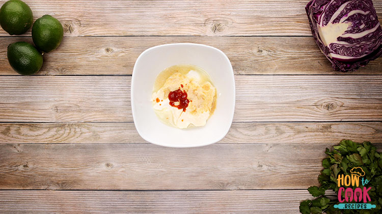 - Next, make the crema sauce. In a small bowl, whisk the mayonnaise, sour cream, garlic powder, siracha, and lime juice to make the garlic lime crema.